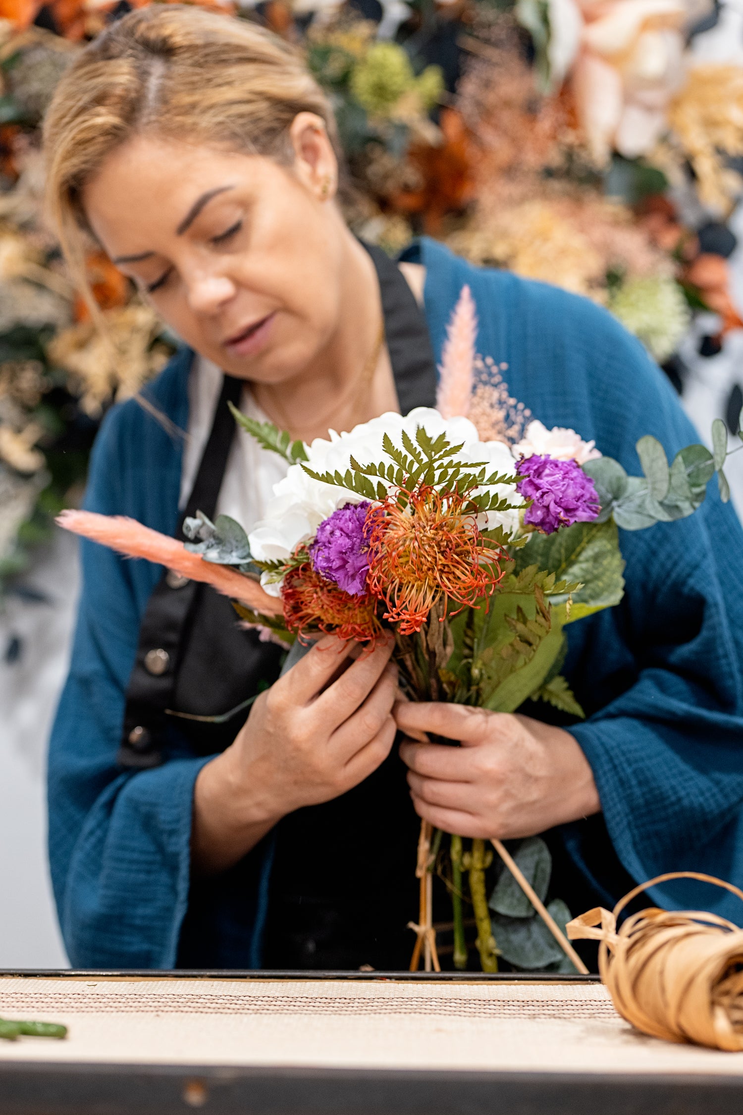 Aurora lidera una marca construida desde el corazón, acompañada por un equipo de personas apasionadas por el diseño floral, los detalles y la sensibilidad estética.
