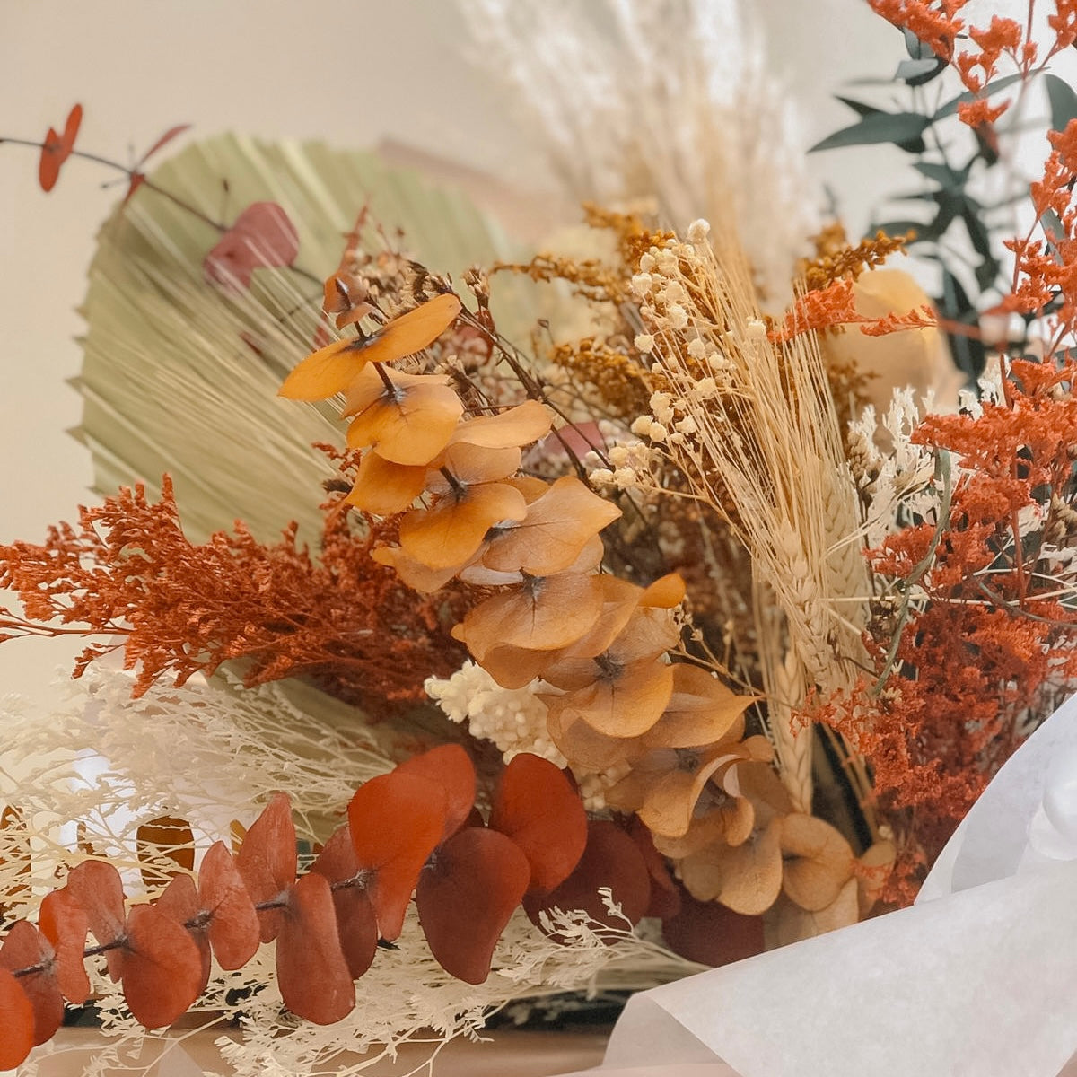 Nuestros atados están elaborados con flores cuidadosamente seleccionadas, secadas y rehidratadas artesanalmente para conservar su forma, color y textura por más tiempo.